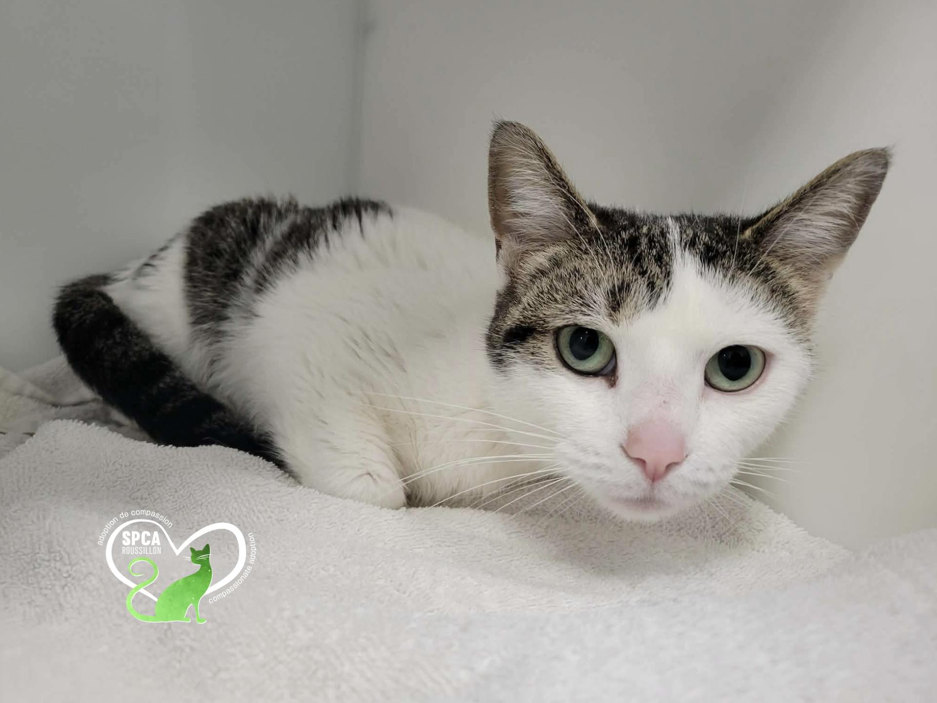 Elle fait partie de notre programme compassion, car elle doit manger de la nourriture urinaires à vie. Son adoption se fait donc sans frais, sur la base d’un don volontaire, afin de lui offrir la meilleure chance possible de trouver un foyer stable.