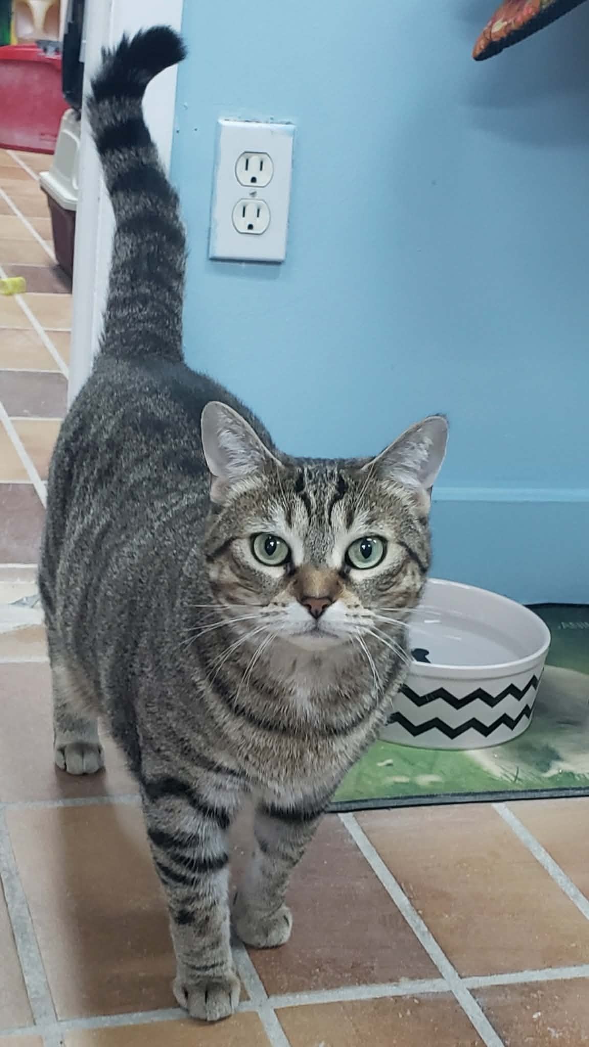 Né en février 2024, Gérard est un magnifique tabby brun au cœur aussi gros que lui. Et quand on dit gros bébé… c’est exactement ça!