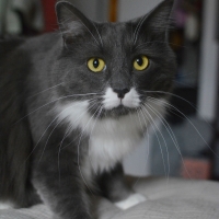 C’est un chat qui nous fait vivre une panoplie d’émotions! Il ne faut donc pas seulement que vous cherchiez un beau chat, il faut que vous compreniez ses besoins et soyez dévoués à son épanouissement. Comme Gigi est nerveux, il ne voudra pas vivre avec de jeunes enfants ou des chiens. Il a encore peur des étrangers, mais après quelques temps il s’y habitue et vient leur demander des caresses. Il va nécessairement régresser dans sa socialisation suite à son adoption, mais avec de la patience et du travail il devrait bien s’adapter au changement. C’est un chat extraordinaire qui a beaucoup à offrir si on s’occupe bien de lui.