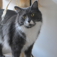 Il demeure un chat nerveux donc il demande beaucoup de douceur. Son pelage est magnifique et doux. Il a un haut niveau d’énergie comme il est jeune! Il adore jouer avec les autres chats de sa maison d’accueil et faire la sieste avec eux. Il joue parfois très dur donc il se cherche au moins un partenaire de jeu félin qui ne sera pas embêté par des séances de lutte quotidiennes. Idéalement, il aimerait même plusieurs copains félins puisque c’est ainsi qu’il se sent vraiment épanoui.