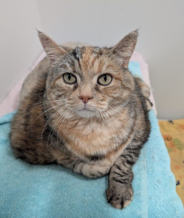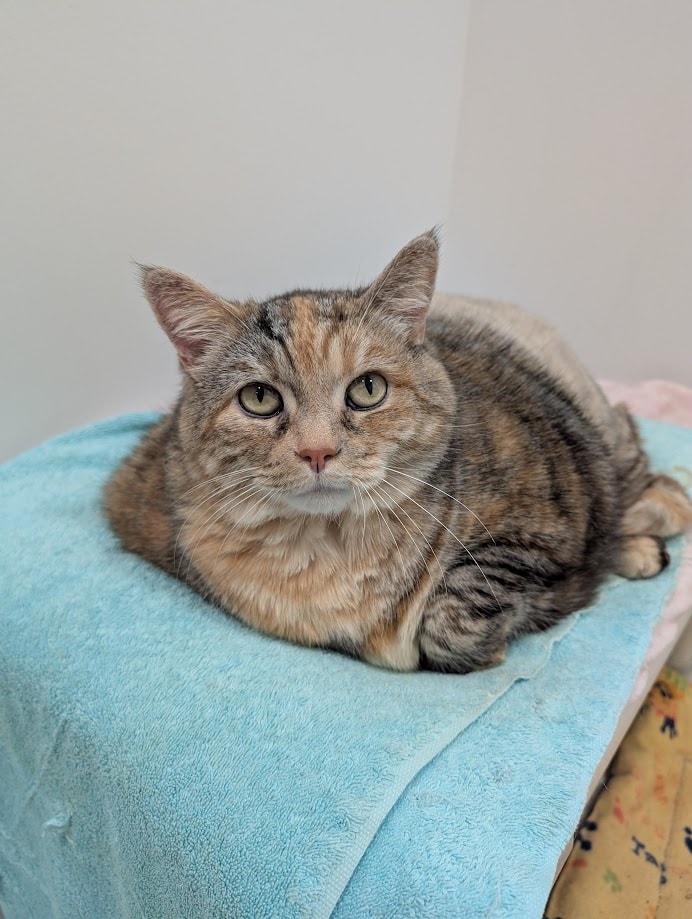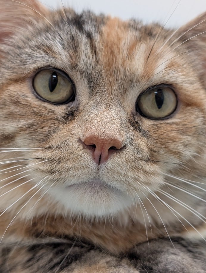 Une belle femelle âgée de 9 ans, dégriffée des deux pattes avant. Elle a besoin qu’on respecte son rythme et son espace au départ, mais avec de la patience, elle se révèle être une compagne douce et affectueuse.