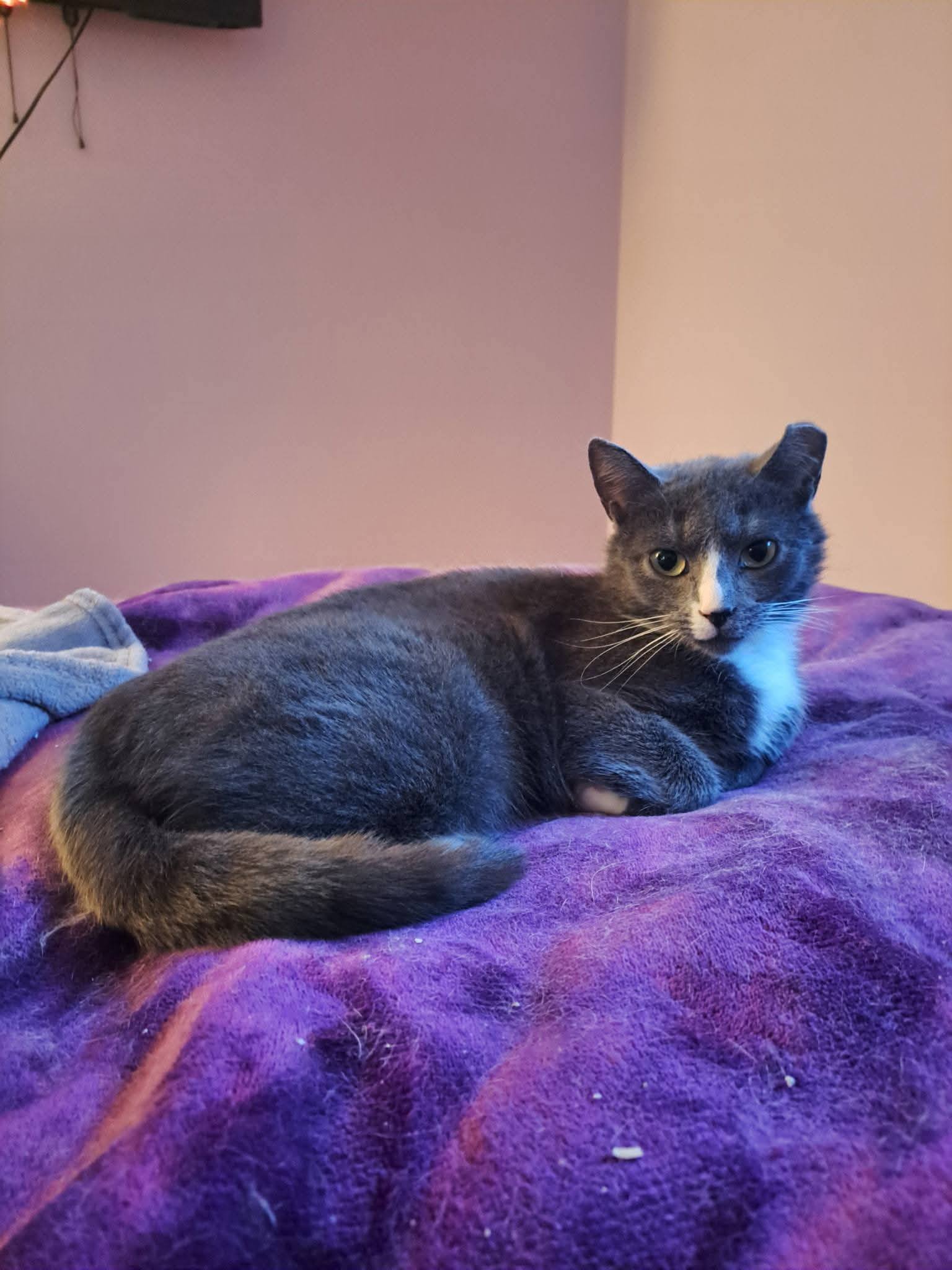 Elle apprécie les câlins et s’entend très bien avec les autres chats.