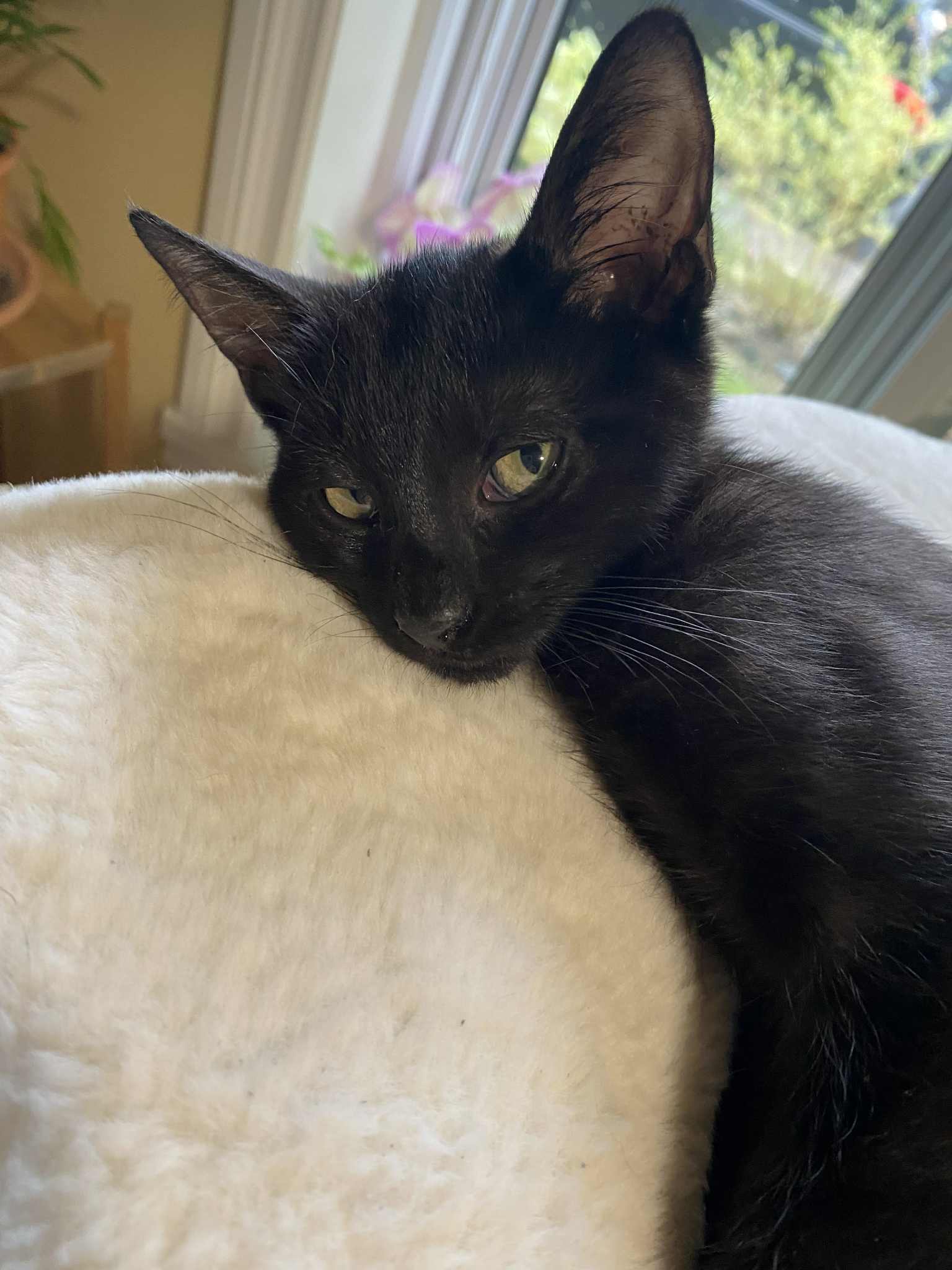 Gizmo est une petite chatte enjouée et charmante qui a plein d’amour à donner. Un peu timide au départ, tendez lui un jouet et elle sera amadouée en peu de temps. Elle n’est pas confortable avec les étrangers pour l’instant. Pas une once de malice dans cette petite chatte gracieuse et rigolote. Elle sera parfaite pour les apprenties sorcières et elle vous suivra partout pour voir tout ce que vous faites.