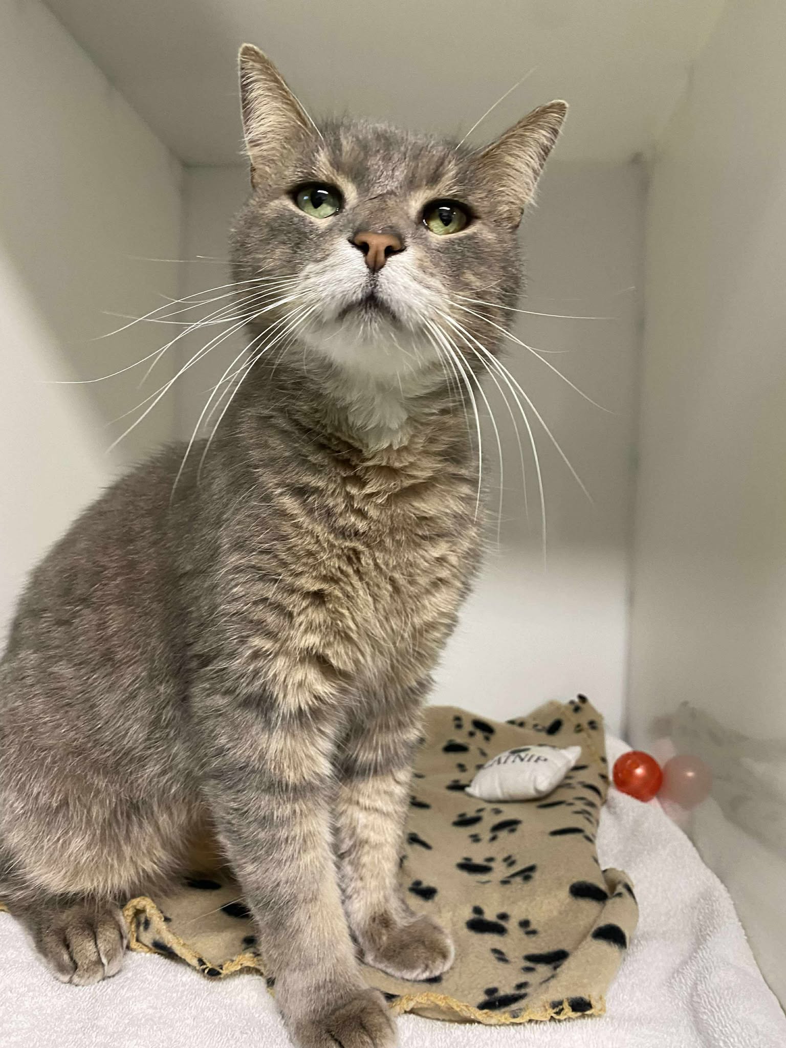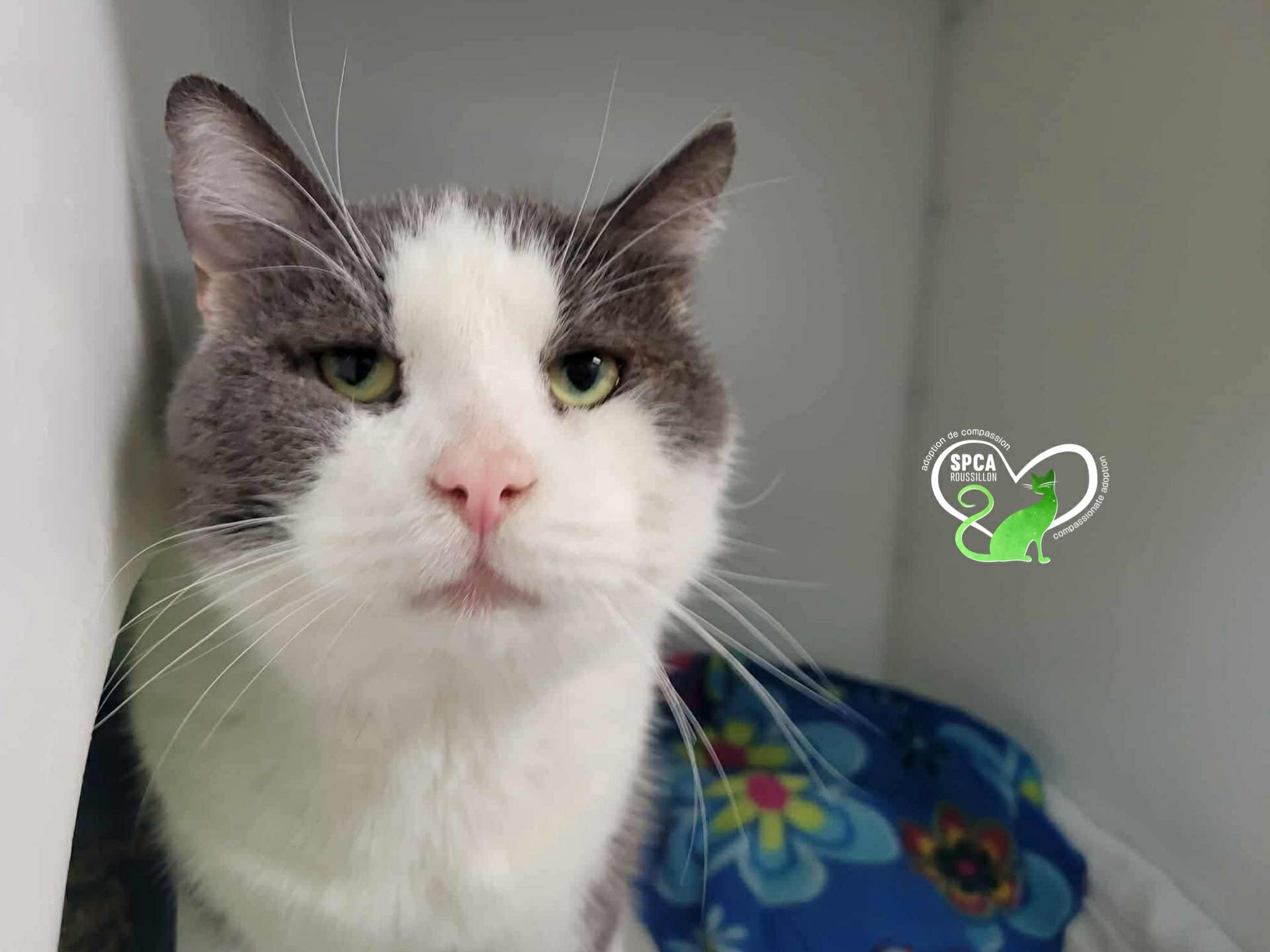 Une superbe femelle calme de 6 ans. Elle déteste se faire toucher le ventre et n’aime pas les bruits bruyants. Toutefois, Grenade est bien affectueuse. Elle a été abandonnée car elle peut avoir tendance a mordre lorsqu’on lui touche le ventre et c’est un risque en présence de bébé/jeunes enfants. Grenade s’entend bien avec les autres chats et est dégriffée aux 4 pattes.
