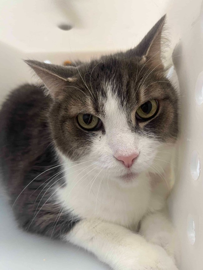Grisou est un adorable chat mâle de 8 ans, dégriffé aux quatre pattes.