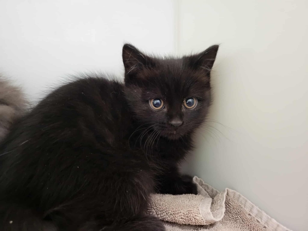 un petit chaton mâle de 2 mois qui mérite une famille prête à aller doucement avec lui.