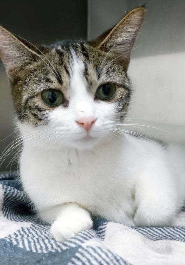 Hazel s’est retrouvée en refuge en raison de l’arrivée de bébé. Son ancienne famille la décrit comme étant gentille, affectueuse et aimant les câlins, ce qui est effectivement le cas même en contexte de refuge.