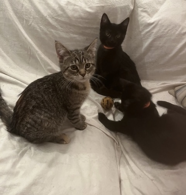 Hazel, Harper & Hunter sont trois formidables petites boules de poils aux yeux vifs et pétillants. Hazel est une jolie tigrée bringée, tandis que Harper & Hunter arborent de magnifiques pelages noirs. Ces bambins sont sociables, joueurs et débordants de personnalité — ils sauront vous divertir, remplir votre maison de rires et votre cœur de bonheur! Ils sont maintenant prêts à trouver leurs propres familles aimantes.
