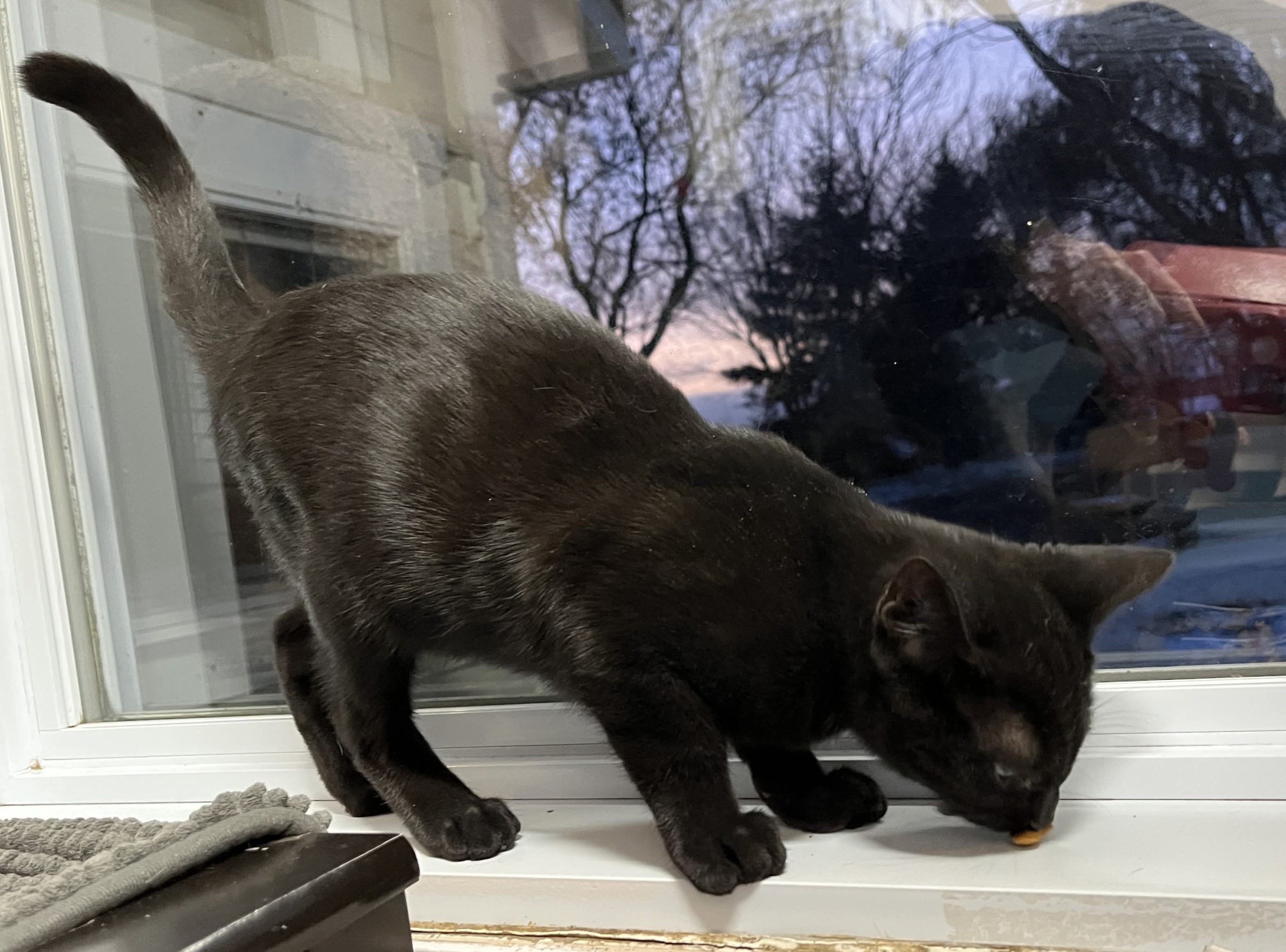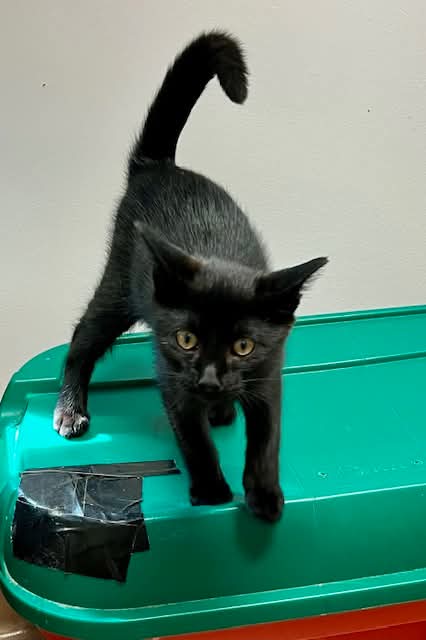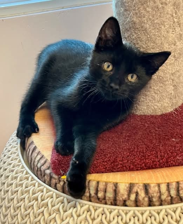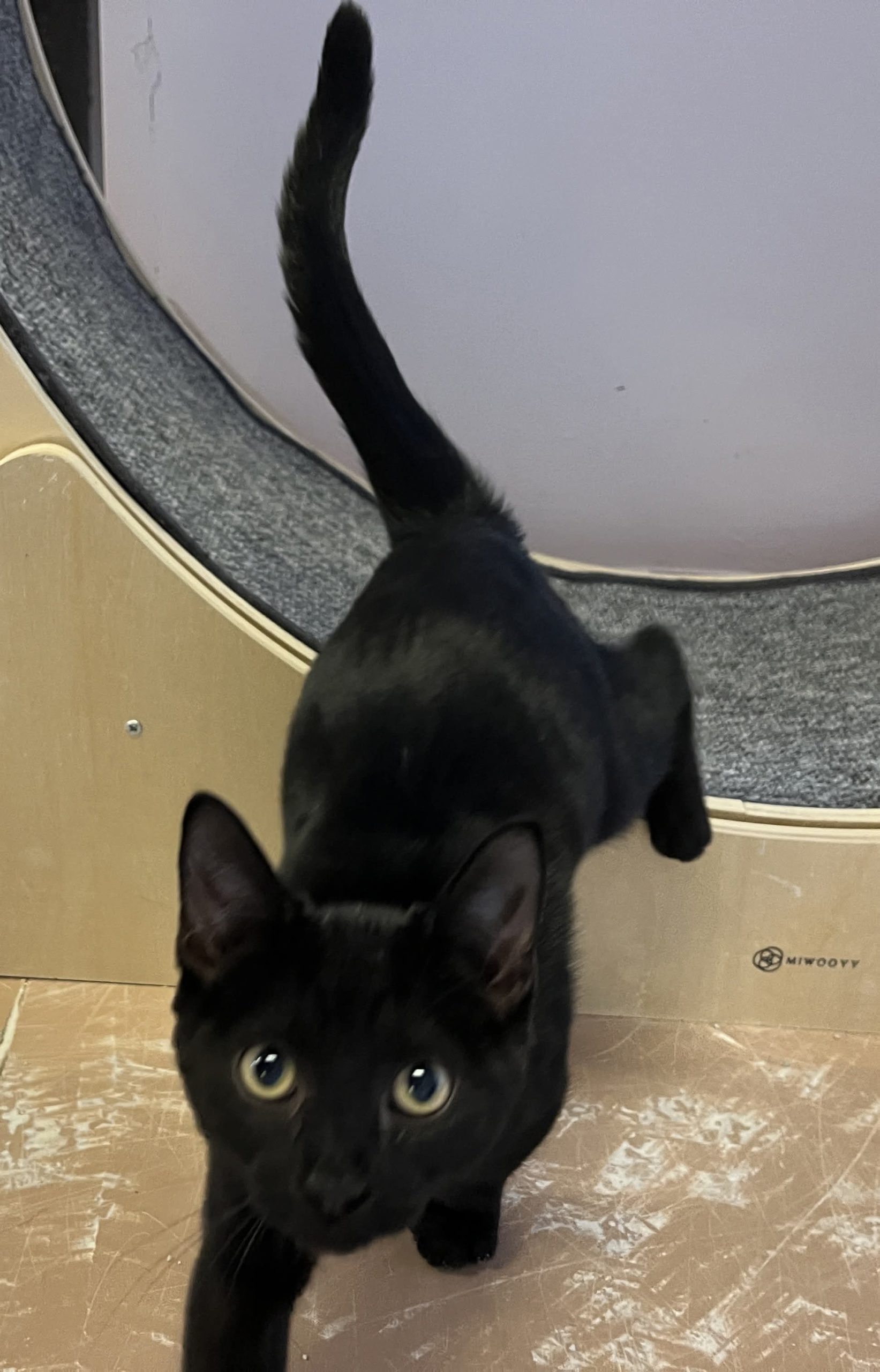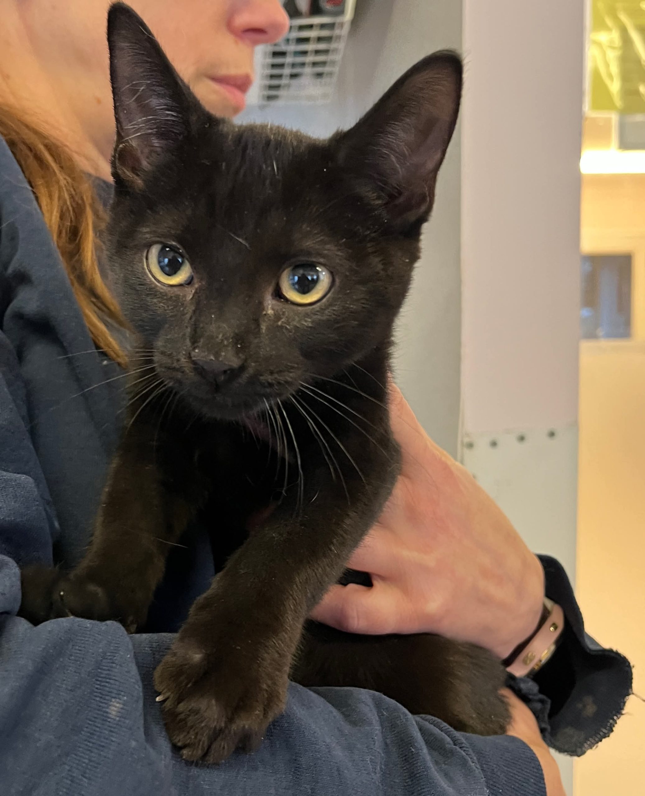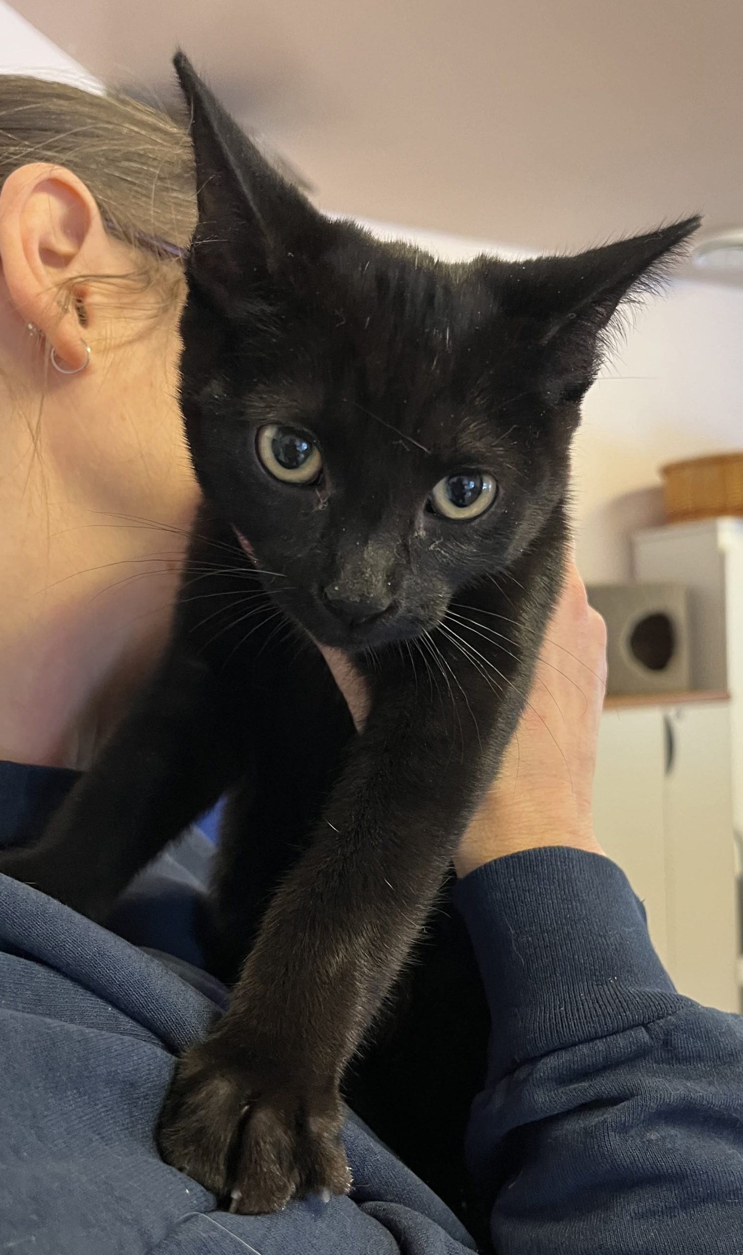 Iago avait été adopté en fin novembre mais est malheureusement de retour au refuge ce 30 décembre 2025. Ses adoptants nous ont donné comme raison que le chaton était trop bruyant et actif la nuit. Le revoilà donc dans la salle commune où habitent une vingtaine de chats adultes attendant leur adoption. Un peu confus et désemparé par ce changement soudain d’environnement, le charmant noiraud devra se réadapter à la vie au refuge en attendant son adoption, que nous espérons très prochainement.