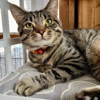 Comme il est nerveux dans son nouvel environnement, Iko ne vient pas vers vous pour le moment. Mais, si on l’approche doucement, il accepte avec grand plaisir vos caresses et vos bécots. Quand il vous connaît un peu mieux, le gentil coco vous laisse même flatter son bedon. Il n’a pas une once de malice. Lorsque vous lui offrez des gâteries, il les déguste et cligne des yeux pour vous remercier. Ce splendide félin est modérément actif et est peu vocal au refuge. Il demeure curieux et enjoué par moments mais, dans l’ensemble, il est plutôt calme pour son âge et très facile à vivre.