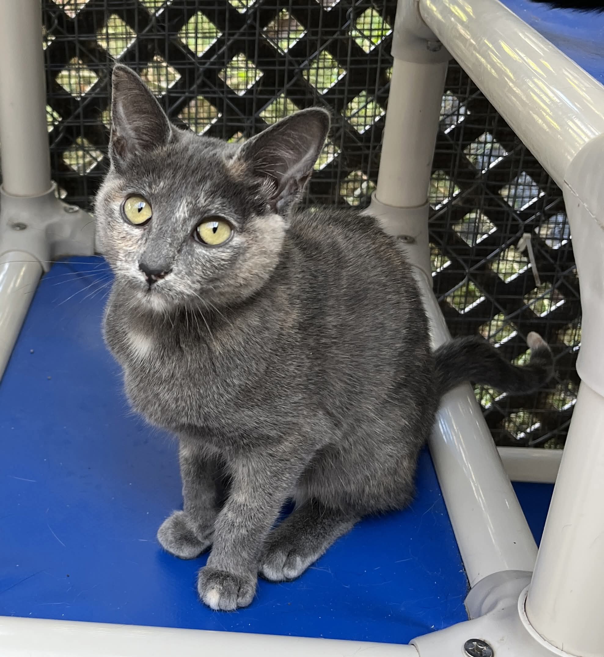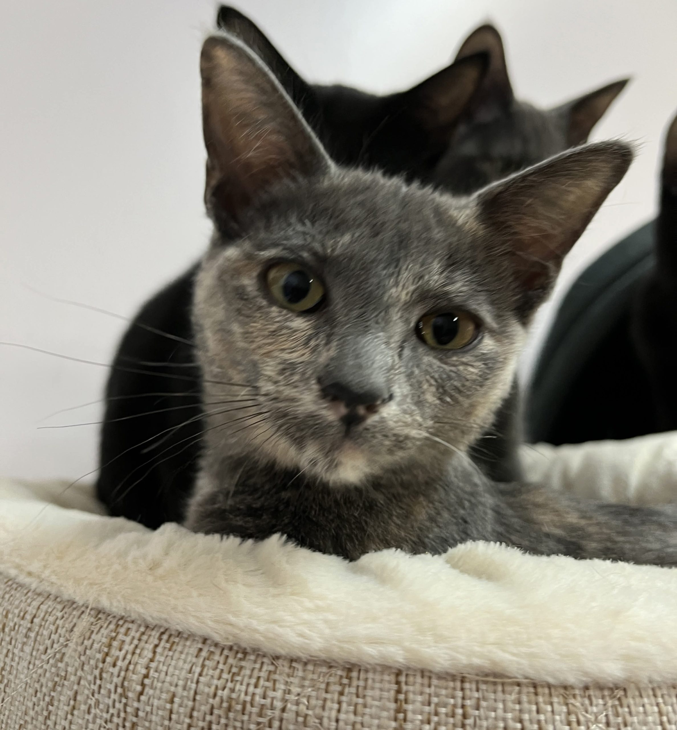 Jade et ses trois frères Jacob, Jonathan et Julio sont nés dans le confort d’une gentille famille d’accueil. Leur maman Joyce est une Siamoise pure race alors que le père est un « inconnu » mais de toute évidence de race domestique. Les quatre chatons ont été emmenés au refuge au début octobre 2025 afin que nous puissions leur trouver des foyers aimants. Les trois garçons ont déjà été adoptés alors c’est au tour de la merveilleuse fillette de trouver son bonheur.