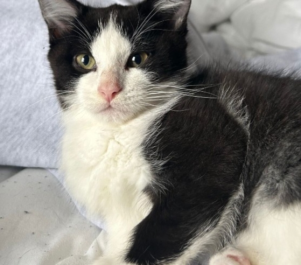 Je suis un chaton doux et adaptable qui deviendra un chat confiant et affectueux. Si tu cherches un petit compagnon à aimer et à voir s’épanouir, je suis celui qu’il te faut! »