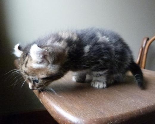 Leur mère est une « American Curl » et ses bébés ont hérité de ses oreilles recourbées, ce qui leur donne un air très mignon.