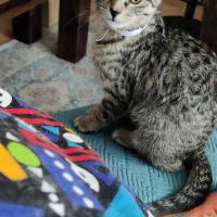 Elle est stérilisée, vaccinée et micropucée. Elle n’est pas testée pour le virus de l’immunodéficience féline (VIF) ni pour la leucose féline (FeLV), mais sa mère Chouchou est négative pour ces deux virus. Elle recherche une gentille famille pour la vie!