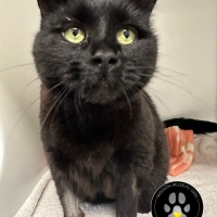 Une somptueuse chatte au pelage noir profond âgée de 13 ans.