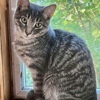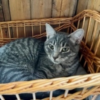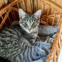 Kimono est un ravissant garçon au pelage tabby gris-argenté déjà plutôt grand et athlétique pour un chaton de son âge. Il est en excellente santé. Son avenir est prometteur: il n’en tient qu’à vous chers adoptants de lui faire connaître le bonheur d’un foyer aimant.
