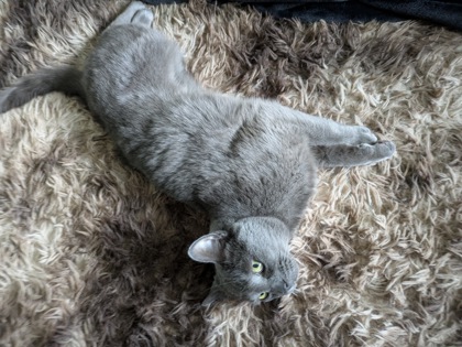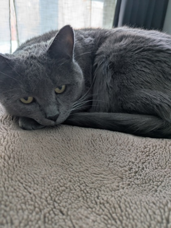 Kitty est un chat très affectueux qui adore les câlins et la nourriture. Autrefois, il n’aimait pas les gens, mais maintenant, il saute immédiatement sur vos genoux pour se faire caresser dès que vous vous asseyez.