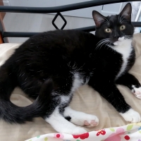 C’est un chaton colleux qui aime la compagnie des chats et des chiens. Il aime aussi les humains, mais a encore quelques réticences. Il aime venir se coller à eux ou venir se coucher avec eux la nuit de son plein gré, mais n’aime pas se sentir dans un espace à l’étroit lorsque les humains veulent m’approcher sinon il prend la fuite.