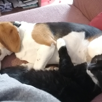 Il apprend beaucoup par l’exemple, donc vivre avec d’autres animaux facilite beaucoup son intégration. Lorsqu’il voit les autres animaux obtenir de l’attention, il ne peux s’empêcher de venir voir ce qui se passe et d’avoir de l’attention pour lui aussi. Il souhaite trouver sa famille pour la vie, celle qui saura lui donner plein d’amour et d’attention tout en respectant ses limites.