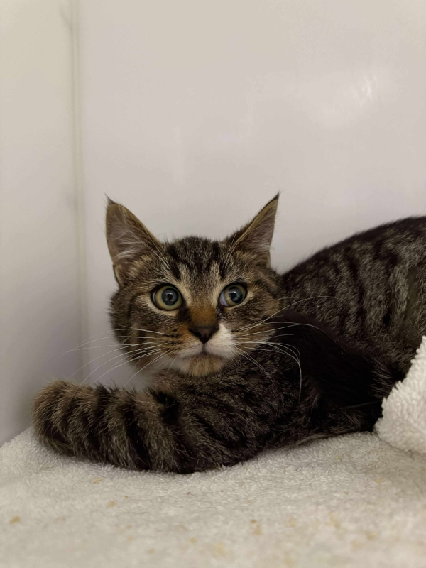un adorable chaton mâle de 3 mois au regard curieux et touchant.