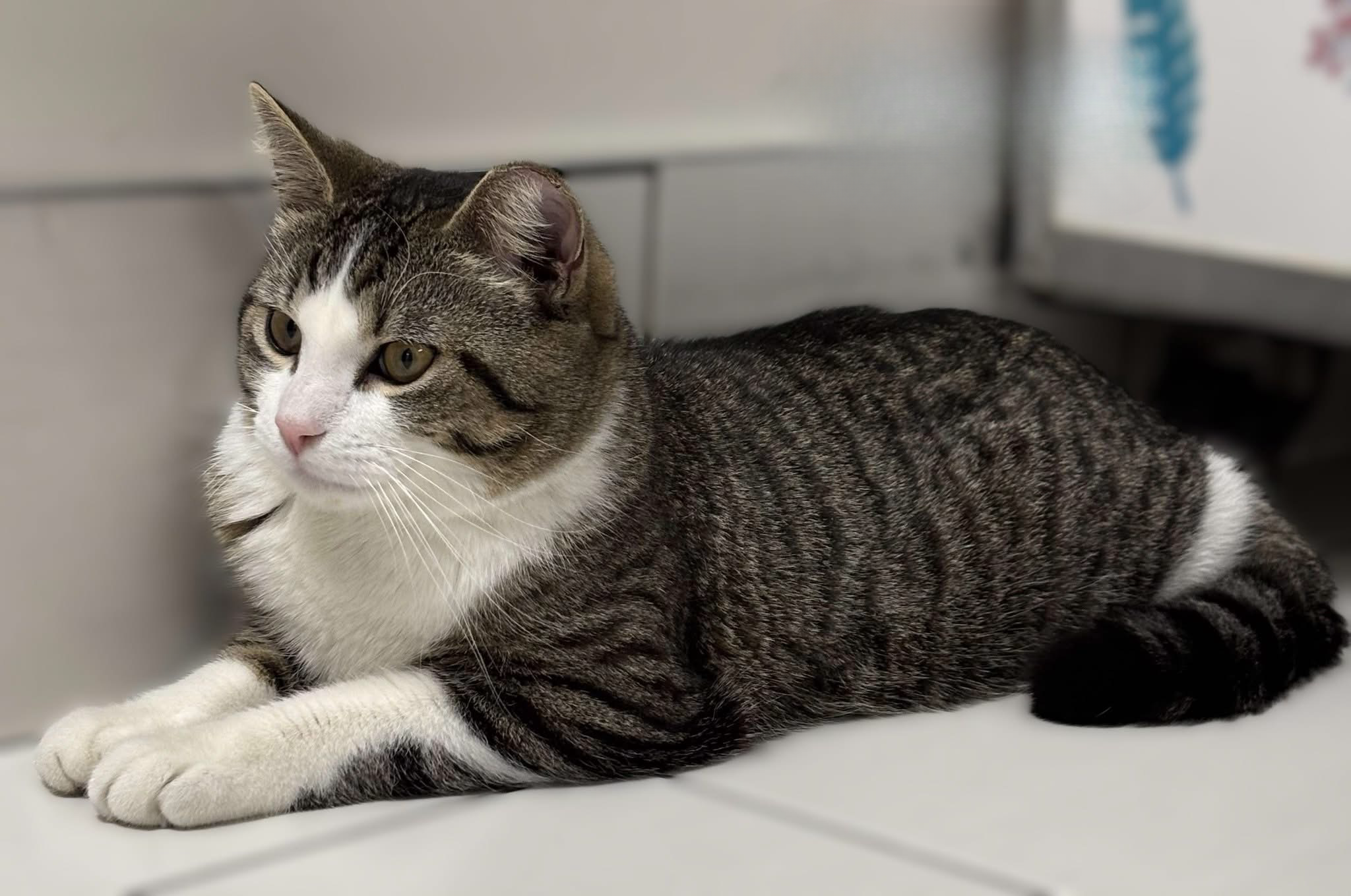 Il est jeune et aime donc jouer. Il se cherche une famille qui lui donnera toute l’attention et l’amour dont il a besoin. C’est un grand chat costaud donc entraînez-vous bien pour pouvoir lui faire des câlins!