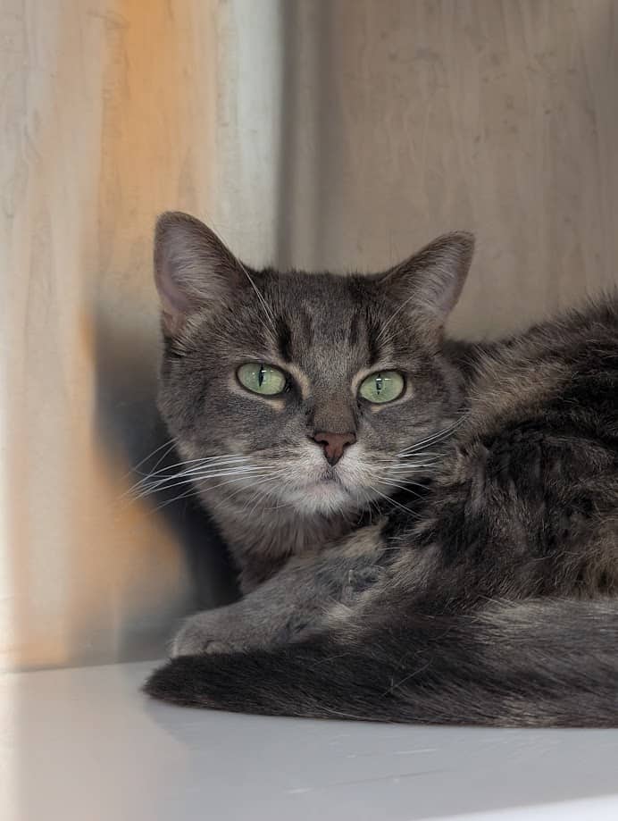 Une superbe demoiselle d’environ 6 ans à la recherche de sa famille pour la vie. C’est une chatte gentille, adorable et très affectueuse. Elle aime être en notre présence et se faire caresser. C’est aussi une minette plutôt active, elle aime jouer, grimper et observer son environnement, une vraie petite curieuse! Lady est compatible avec les jeunes enfants et avec les autres chats. Pour ce qui est de sa cohabitation avec les chiens, elle n’a pas encore été testé et sera à voir avec le temps.