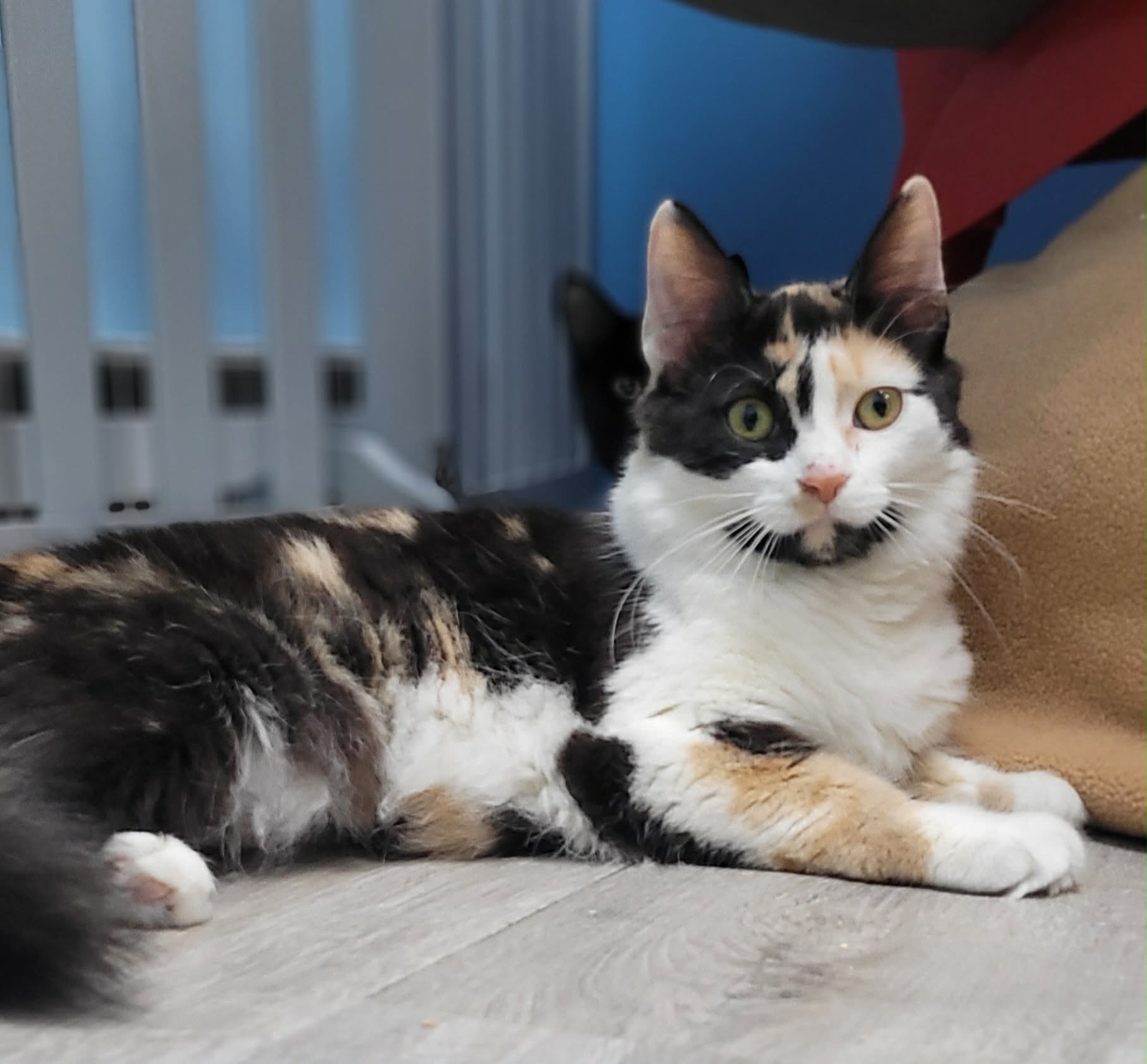 Voici Laurence! Laurence est une magnifique petite chatte calico à poil long de 7 mois au regard attendrissant et au cœur...