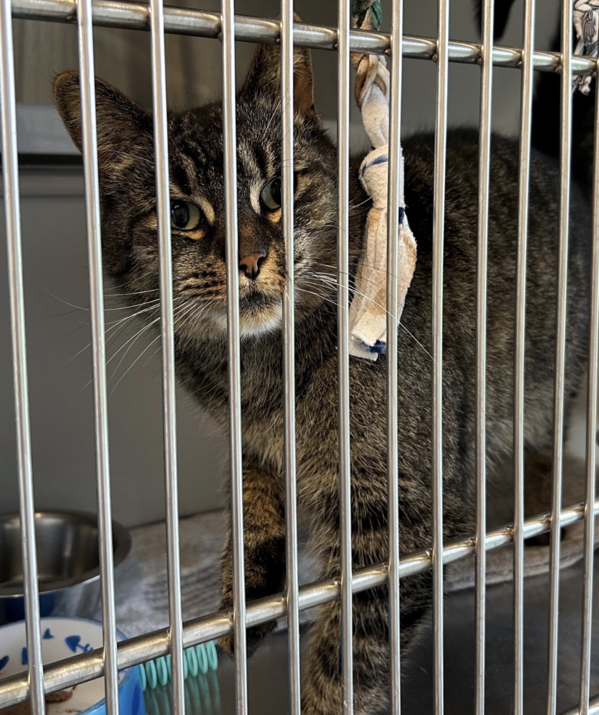 C’est une citoyenne qui nous l’a apporté, après que son « propriétaire » ait menacé de le jeter aux vidanges. Il était régulièrement poussé et tassé par les humains, en plus d’endurer des cris et les menaces, sans compter le chien qui le traitait un peu comme un jouet.
