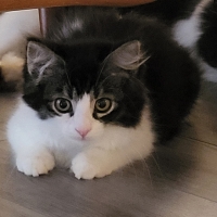 Il a été trouvé abandonné avec sa mère et ses quatre frères et sœurs. Il est un peu timide avec les nouvelles personnes au début, mais se réchauffe rapidement.