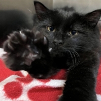 La chatte de la famille a eu une portée dont le petit Licorice fait partie. Il est gentil, actif et joueur. Il adore se lancer des peluches!