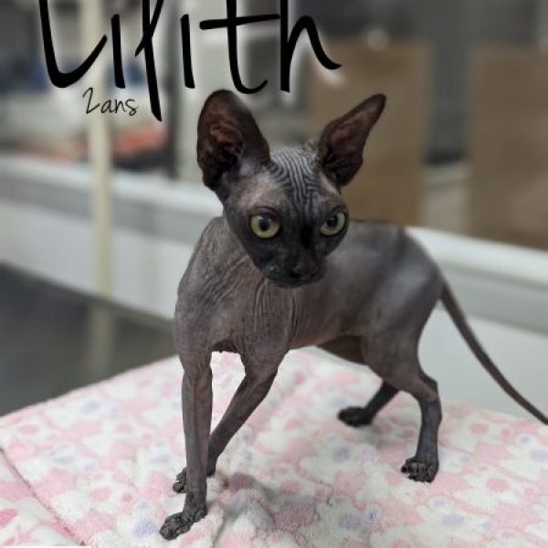 Une superbe femelle de race Sphinx croisé âgée de 2 ans.