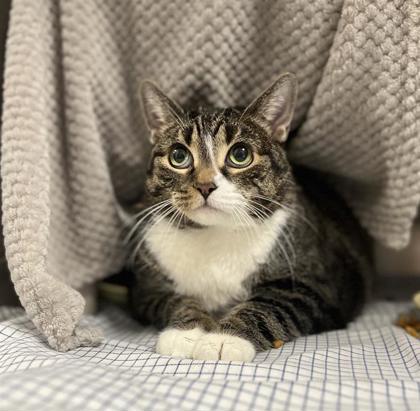 Elle fait partie de notre mission Museau-Gris qui réduit les frais d’adoption afin d’aider nos chats âgés à trouver une famille plus facilement.