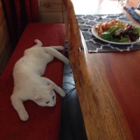 Elle nous fait toujours rire à cause de ses postures un peu étranges. Elle écoute super bien et nous suit partout comme un petit chien de poche. Elle aime bien jaser pour attirer l’attention et recherche les caresses. C’est une chatte attachante et sociable.