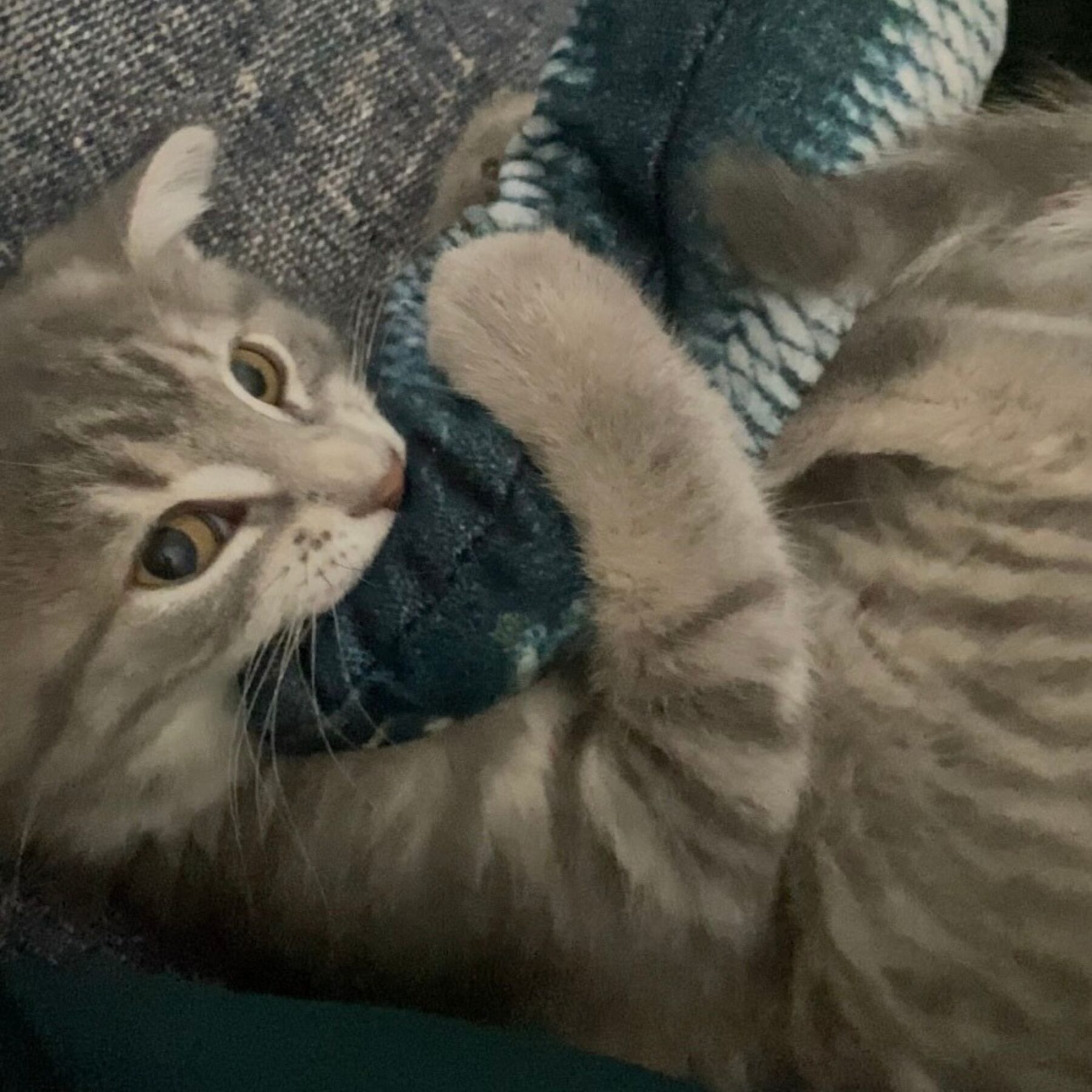 J’ai été trouvée sans maman, alors je n’ai peut-être pas bénéficié de tous les apprentissages dont j’aurais dû. J’apprends encore à gérer mon énergie débordante et je présente un niveau d’activité possiblement plus élevé que la moyenne, alors il m’arrive parfois de mordiller, griffer ou de considérer les mains et les pieds comme de grands jouets. Il faudra donc m’aider, avec douceur et patience, à me rediriger sur des objets adéquats et canaliser mon énergie afin que je puisse m’épanouir pleinement à vos côtés!