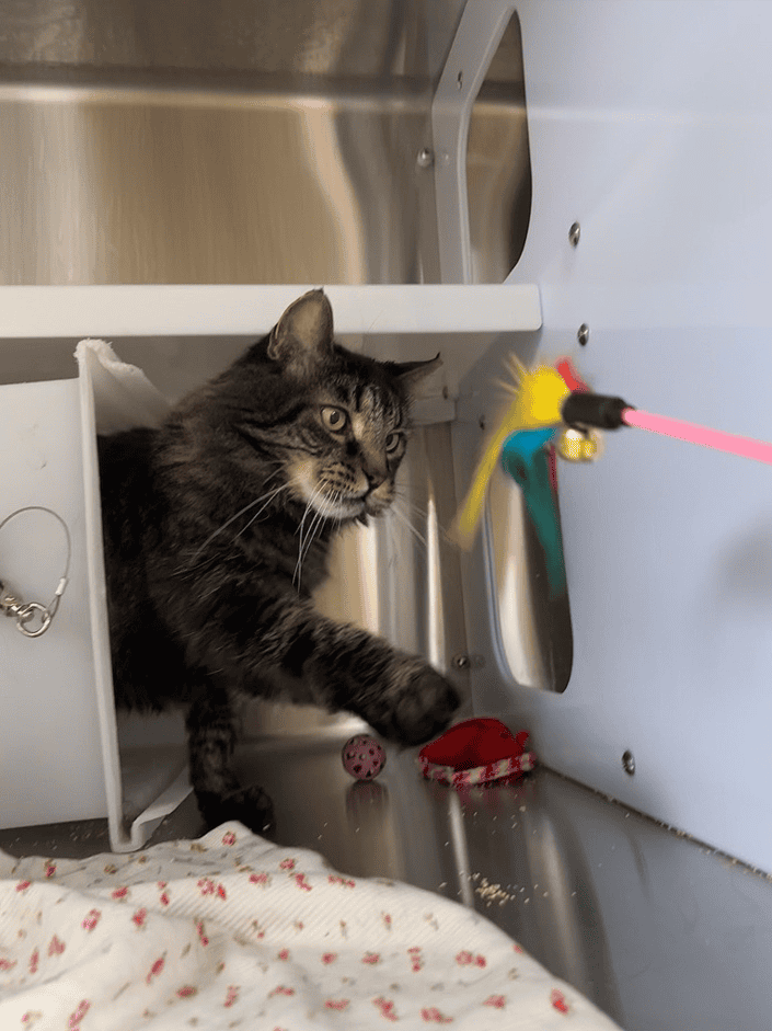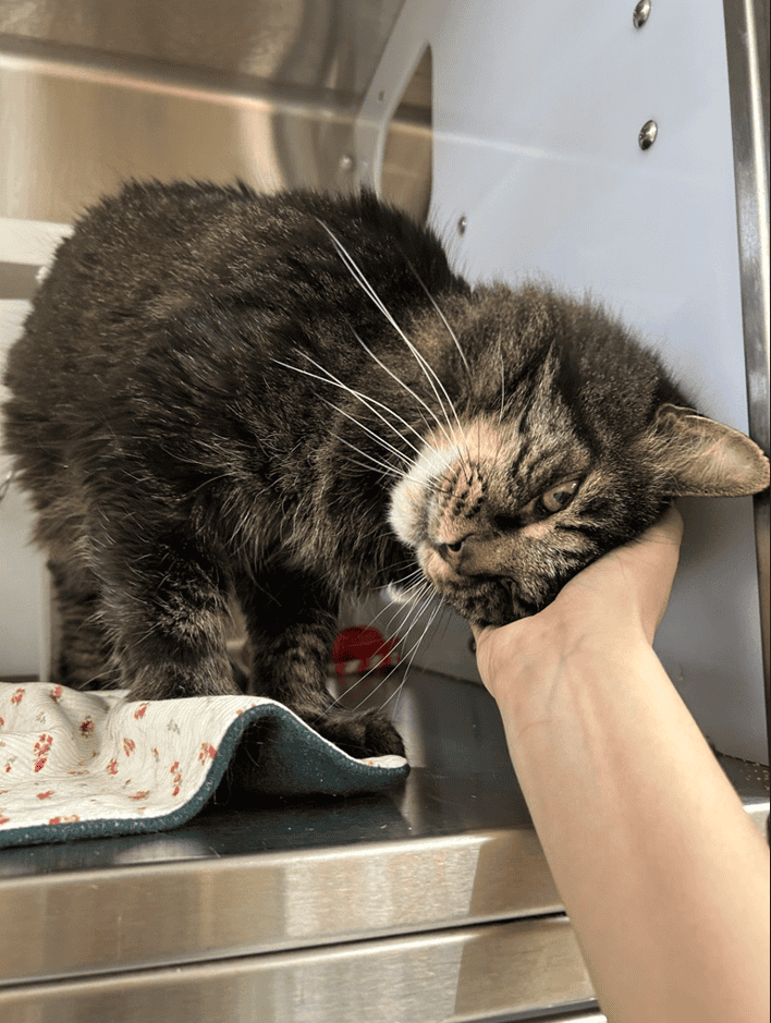 C’est un chat calme et attachant, qui aime qu’on respecte son rythme. Il vient volontiers vers nous pour réclamer de l’affection, se laisse flatter avec plaisir — même pendant les repas! Lotto Max adore les caresses, surtout sur la tête, et il n’hésite pas à frotter doucement sa tête contre notre main pour en demander encore plus. Au comble du bonheur lorsqu’il partage notre présence, il n’hésite pas à discuter avec nous et à faire entendre un gros ronronnement!