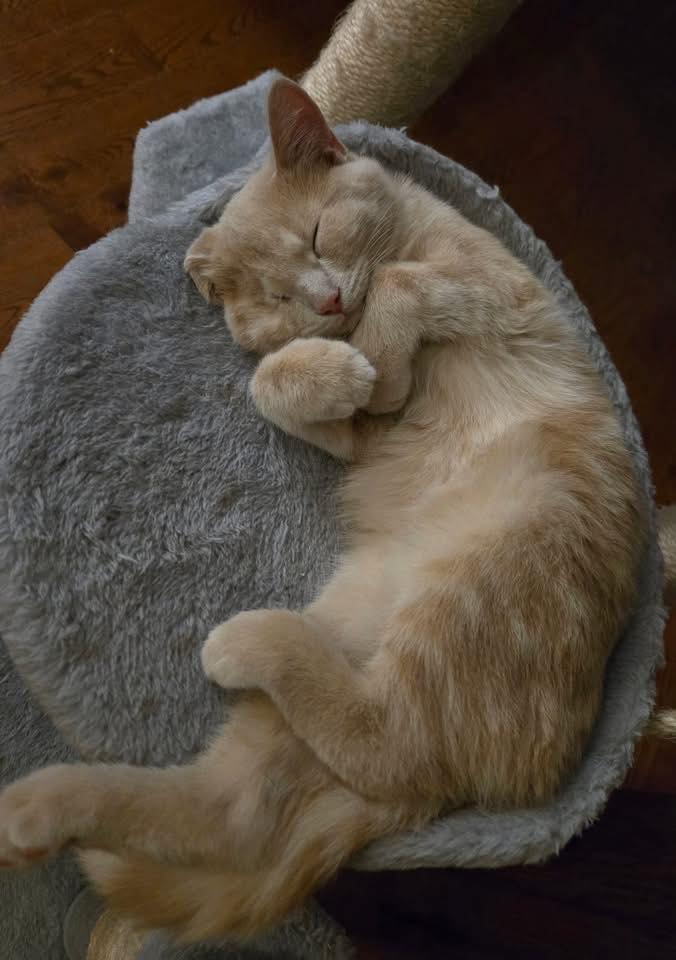 Lou est un chaton en pleine forme maintenant, il est joueur, vocal et gourmand.