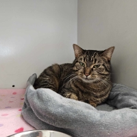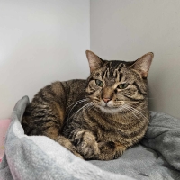 Une chatte de type domestique à poil court d’environ 3 ans.