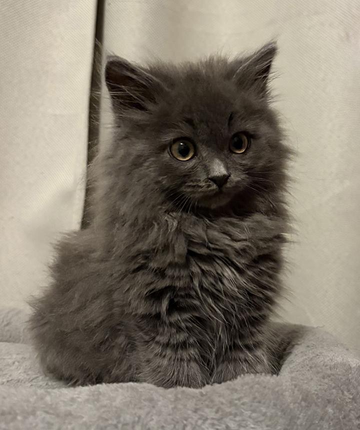 Une petite femelle de bientôt 3 mois. Elle est enjouée et curieuse. Elle aime aussi se faire prendre pour faire le tour de la maison. Luciole a beaucoup d’énergie et aime jouer seule ou avec les autres chats et les enfants