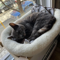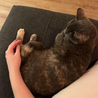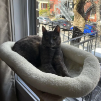Elle demande beaucoup de câlins aux gens et adore jouer avec sa souris qui fait du bruit. Elle l’attrape dans sa bouche et court pour la ramener afin qu’on la lui lance ; elle agit comme un chien! Elle aime aussi particulièrement se reposer sur son transat de fenêtre. Elle est très contente que sa famille d’accueil lui en ait acheté un. Sa surveillance de quartier fait d’ailleurs partie de ses passe-temps favoris.