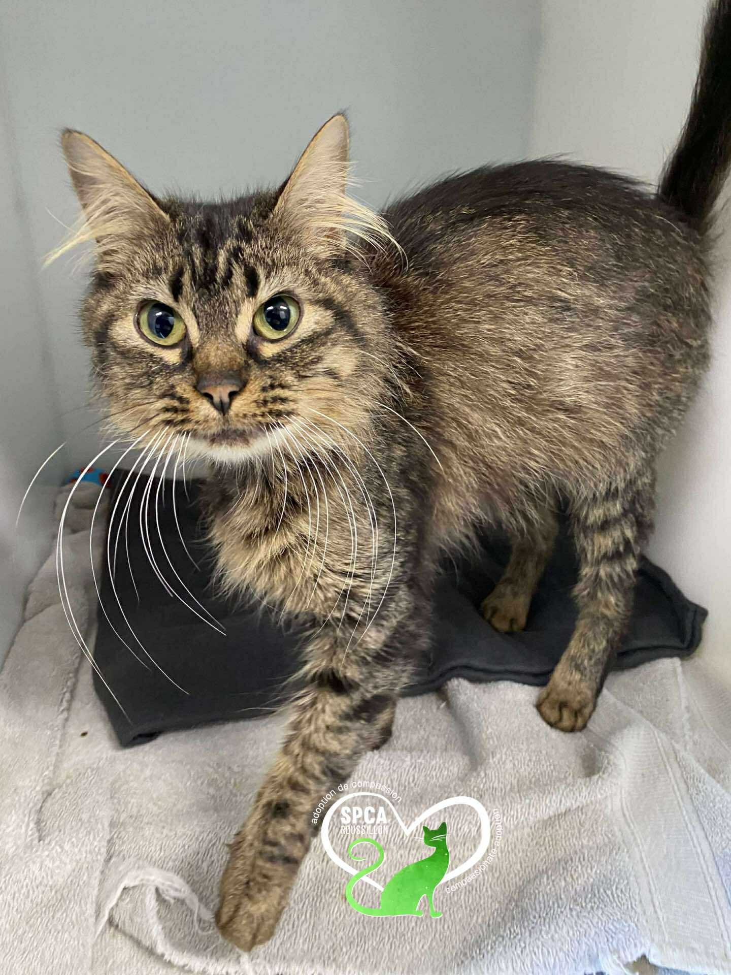 Une magnifique femelle de 14 mois au pelage tabby gris claire. Elle est bien sûr stérilisée, vaccinée, vermifugée et à la recherche d’une famille pour la vie!