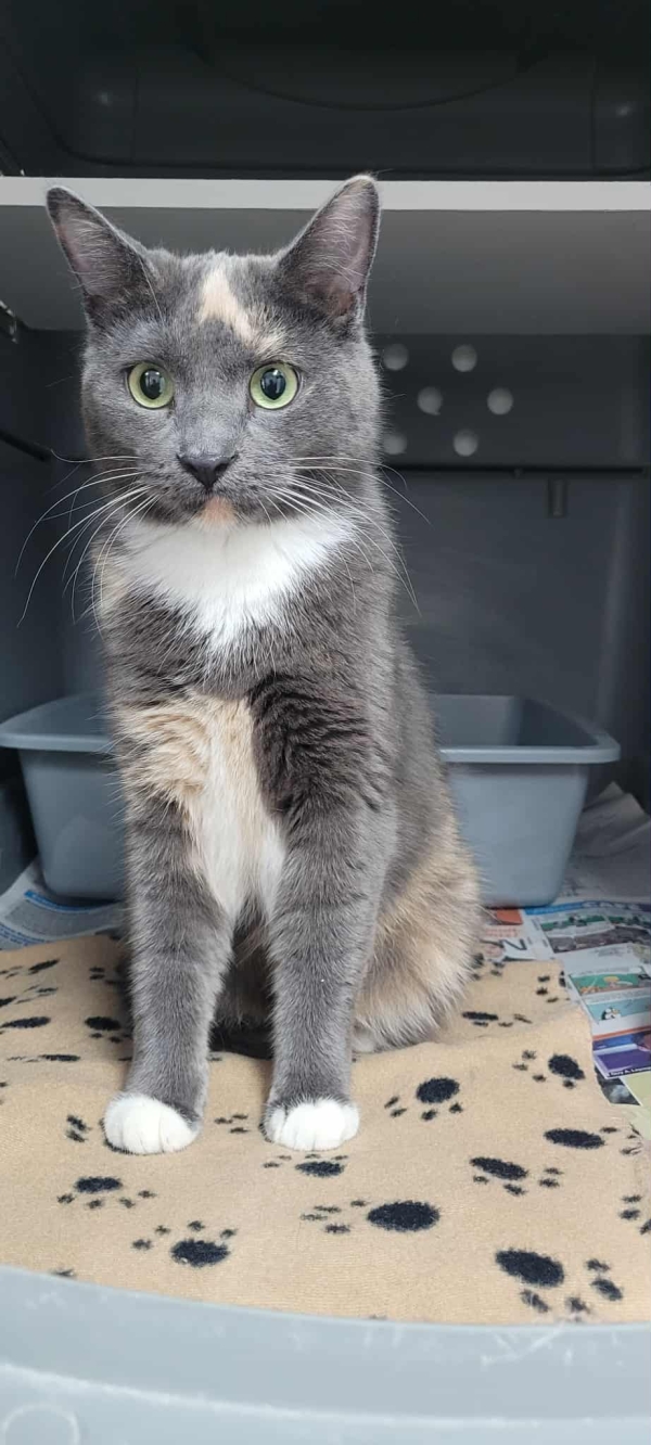 Lysanne est une magnifique chatte calico diluée à poils courts, de 2 ans, au charme délicat et au regard plein de curiosité. Affectueuse et tendre, elle adore les moments de câlins, mais elle reste un peu nerveuse et a besoin de douceur pour se sentir en sécurité.