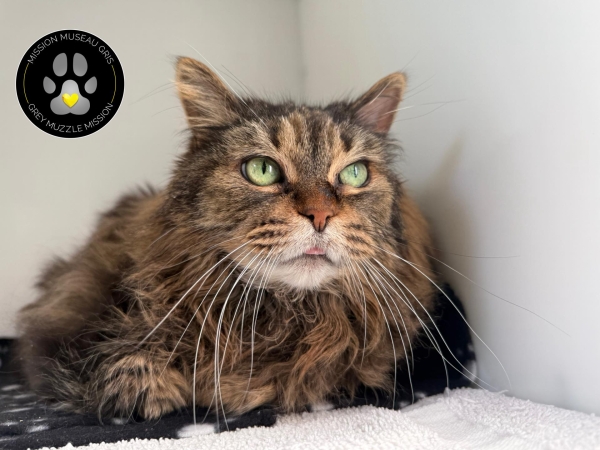 Martine fait partie de notre programme Museau Gris, qui met en lumière les chats seniors à la recherche d’une famille aimante pour leurs belles années dorées. Elle rêve d’un foyer calme, rempli de respect, de douceur et de petites attentions.