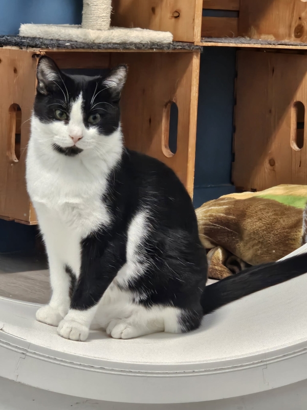 Méné est un magnifique chat mâle noir et blanc à poil court de 9 mois.