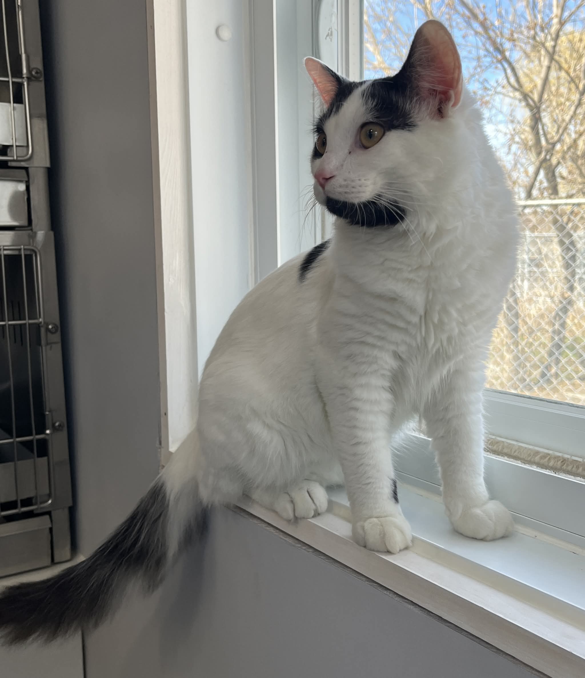 Milky est curieux, agile, jovial et enjoué par moments. Le ravissant moustachu adore regarder dehors pour observer les oiseaux; lui offrir un bel arbre à chat placé près d’une fenêtre ou de la porte-patio dans sa nouvelle demeure serait idéal. Milky est moyennement actif et peu vocal – il lui arrive de miauler pour attirer votre attention mais sans plus. On le voit souvent couché sur le dos avec les quatre pattes en l’air – ce chat est vraiment craquant! Une fois dans une demeure rassurante et conviviale, vous pourrez découvrir toutes les facettes de son agréable personnalité et créer un solide et durable lien affectif avec le charmant Milky.