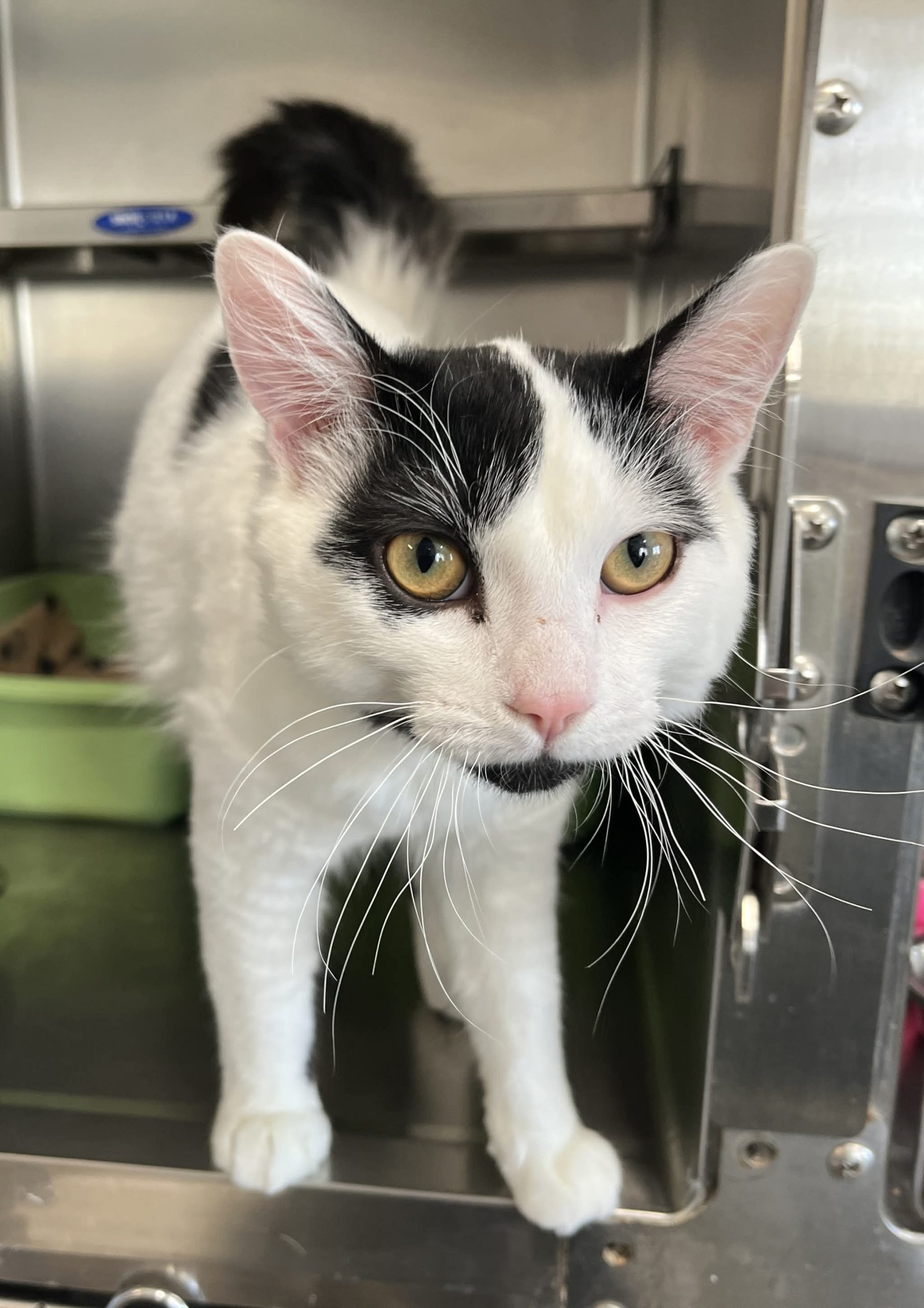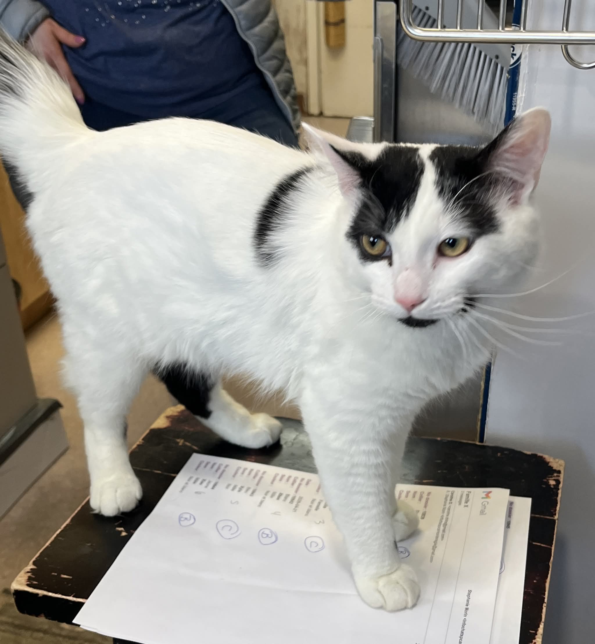 Milky est un formidable félin élancé, gracieux et en excellente santé. Vous serez immédiatement attiré par ce beau garçon puisqu’il arbore un attrayant pelage soyeux à prédominance de blanc mais avec quelques taches noires incluant sa queue en panache qu’il arbore avec fierté. Et que dire de ses splendides yeux dorés pétillants et lumineux)