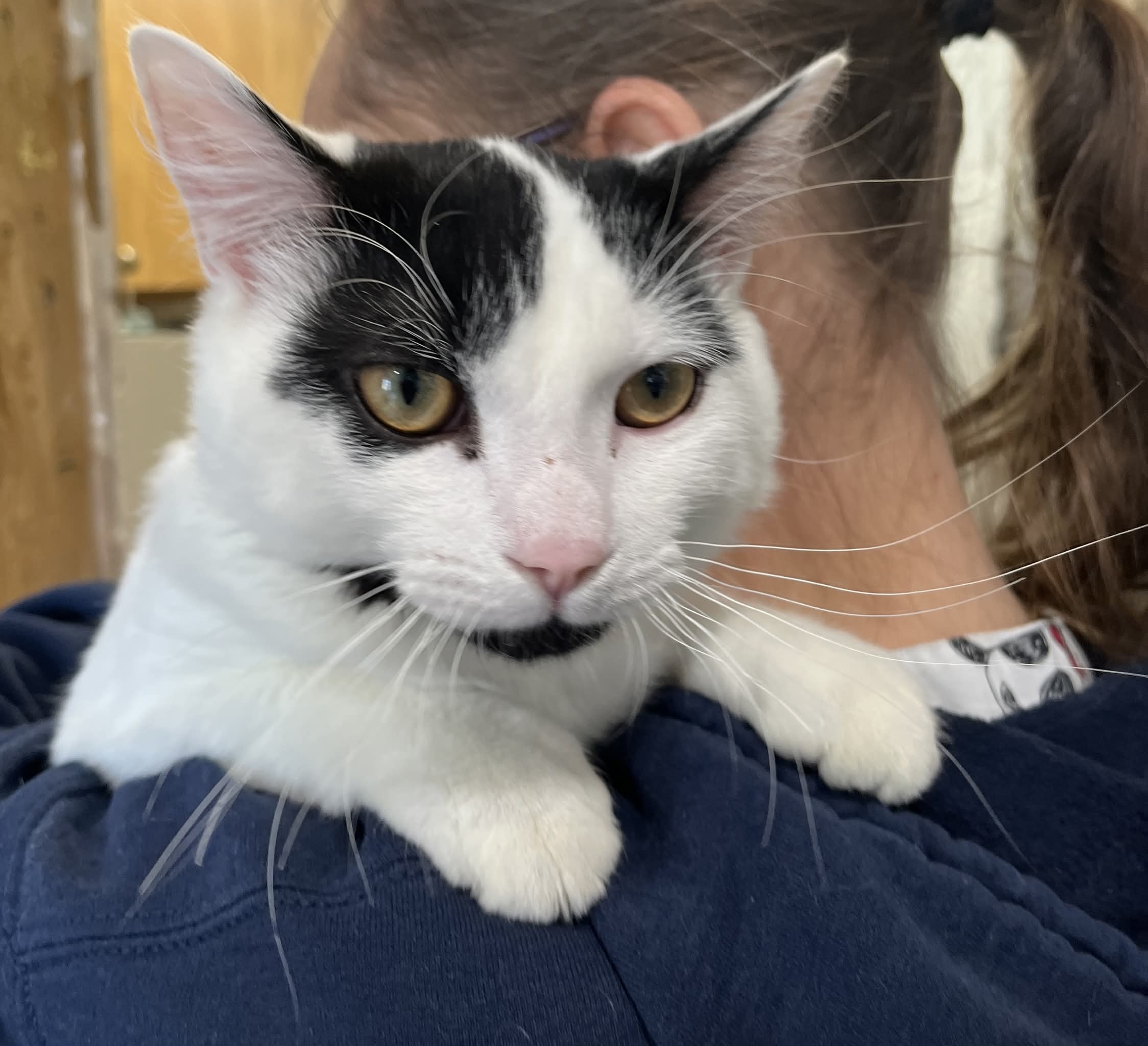 Le séduisant jeunot a été confié au refuge à la mi-avril. Milky a été trouvé errant et de bonnes gens l’ont rescapé, nourri et hébergé pendant quelques semaines. Malgré que le minet s’avérait très affectueux et sociable avec les adultes et les enfants de la maison, Milky avait beaucoup de difficulté à cohabiter avec leurs autres chats ainsi qu’avec leur gros chien.