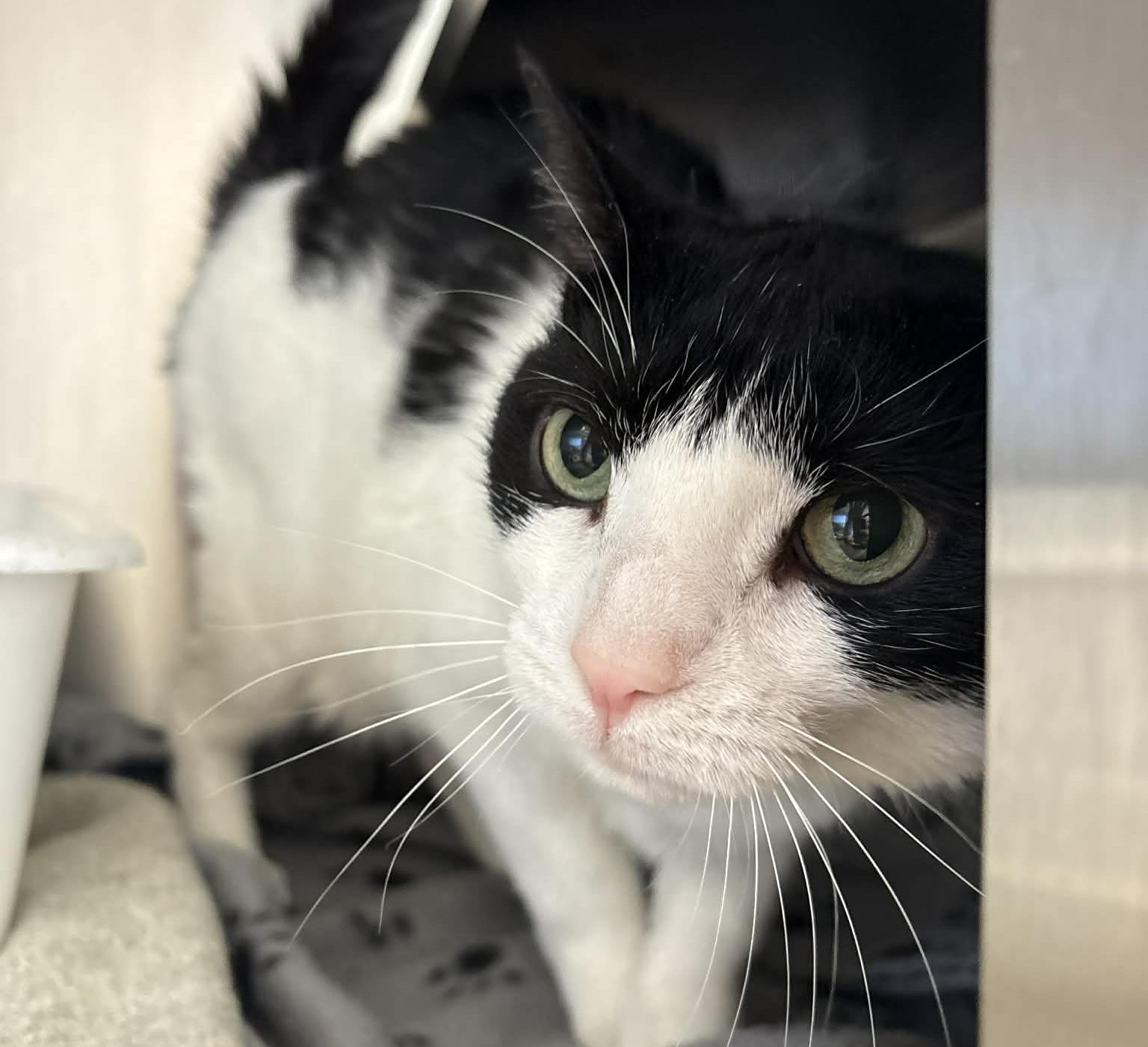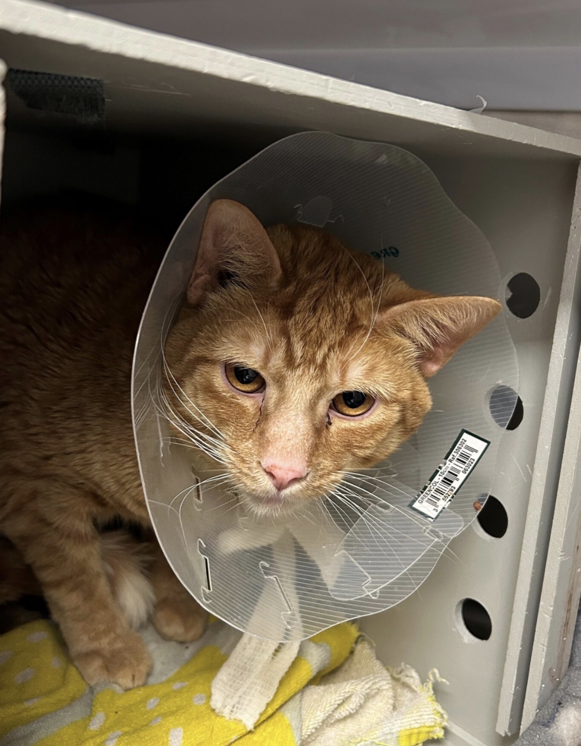 Milou a une petite cicatrice à l’œil gauche, causée par un entropion qui a été corrigé. La guérison est déjà en cours et tout devrait rentrer dans l’ordre rapidement.