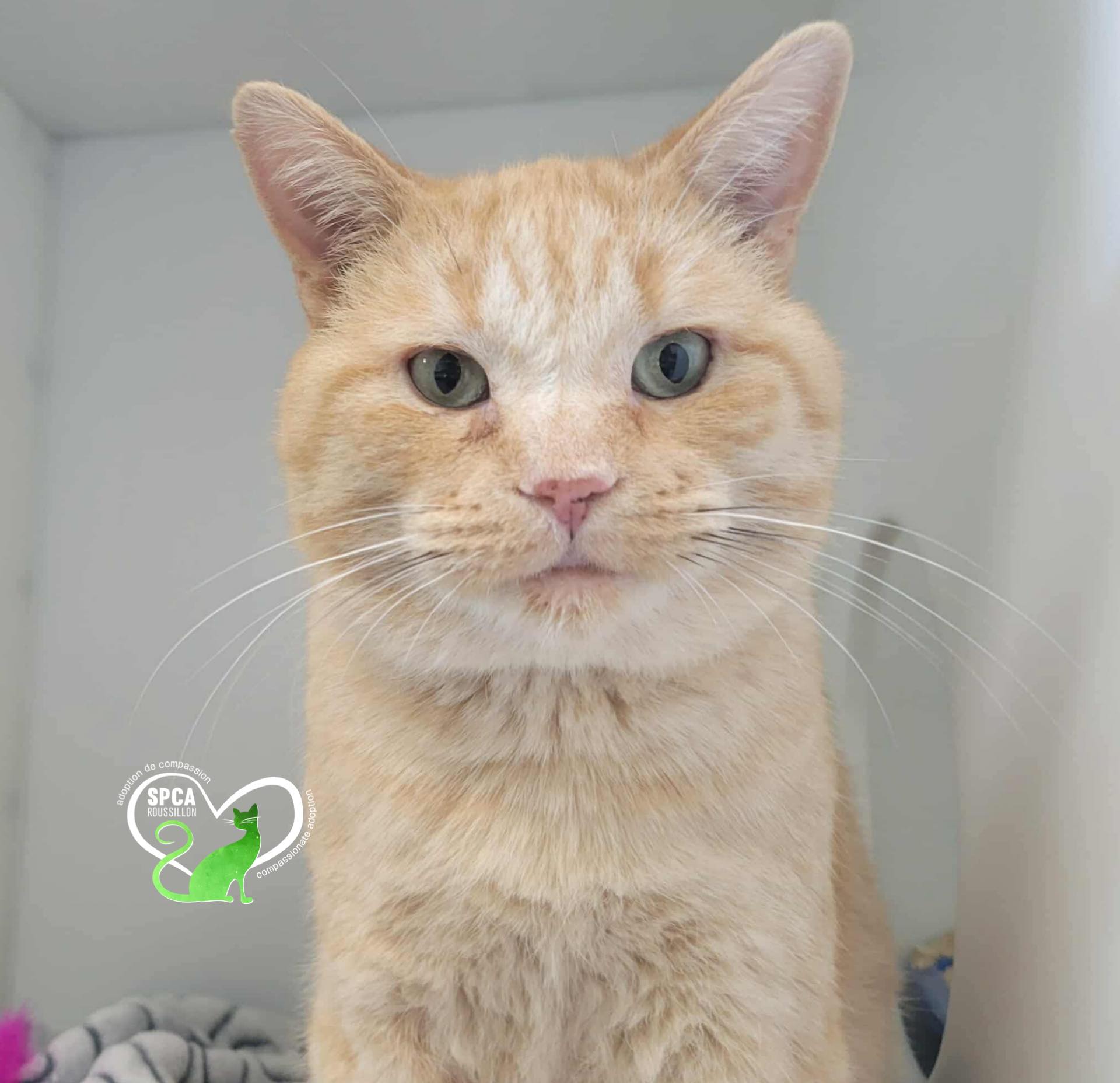 Je suis une belle femelle blonde de 1,5 an. Je suis stérilisée et j’aimerais beaucoup trouver une famille pour la vie. J’adore qu’on s’occupe de moi et me faire flatter.