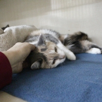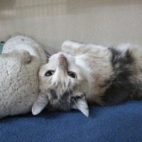 une jeune femelle de 1 an très douce et gentille. Misty aime beaucoup les gens et les câlins. Misty est gentille avec Isaac le chat qui partage sa place. Misty a besoin d’une famille aimante.