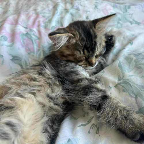 Elle est une petite chatte douce, affectueuse et sans malice, qui ne demande qu’à aimer et être aimée. Elle adore dormir blottie contre les humains, jouer avec ses copains félins et ronronner de bonheur. Son cœur déborde d’amour pur et elle est prête à le partager avec sa famille pour la vie.